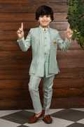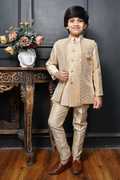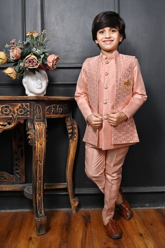 Introducing the Sherwani for Kids by Ahhaaaa - a stunning piece of clothing that combines traditional Indian style with modern western embellishments. This Indo-western style Sherwani is perfect for formal occasions such as weddings, parties, and cultural events. The Sherwani for Kids is adorned with intricate prints and embellishments that make your child stand out in any crowd. Made from high-quality materials, this Sherwani is comfortable and easy to wear, allowing your child to move around with ease. Whether you're looking for a special outfit for your child's next big event or want to add some Indian flair to their wardrobe, the Sherwani for Kids by Ahhaaaa is the perfect choice.