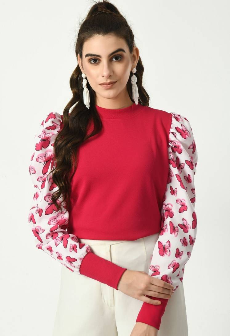 Statement sleeve, Floral prints, Trendy Top, Bold red, Volume Sleeves
