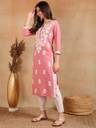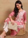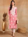 AHIKA Women Embroidered Viscose Rayon Straight Kurta (Pink)