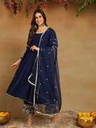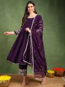 Buy exlusive pretty look in a Suit set from Vivaanta Fashion Black colour Long Sleeves Embroidered Round Neck Flared Kurta with Bottom and Dupatta,exclusively designed to add grace to your wardrobe. Crafted with precision and attention to detail, this ensemble is perfect for both casual and festive occasions.