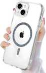 Keep your Apple iPhone 15 looking new while adding dependable everyday protection with the AIBEX Glitter Mag-saf Clear Case. The hybrid design pairs a hard, crystal-clear polycarbonate back with a shock-absorbing TPU bumper featuring AirEdge corner cushioning. An advanced anti-yellowing treatment helps the transparent back stay clear, so your phone’s original color shines through. A raised bezel around the screen and a 360° camera ring shield the most vulnerable areas from scratches when set face-down or camera-down. Engineered for a precise fit, the case offers smooth, responsive button covers and accurate cutouts for speakers, ports, and mics. The slim, lightweight profile slips easily into pockets and hands, while the grippy sides reduce slips without adding bulk. Mag-saf and Qi wireless charging remain seamless—just snap your charger on and power up with the case installed. If you want a sleek, protective, and crystal-clear cover that complements your Apple iPhone instead of hiding it, AIBEX Glitter delivers.Apple iPhone 15 looking new while adding dependable everyday protection with the AIBEX Glitter Mag-saf Clear Case. The hybrid design pairs a hard, crystal-clear polycarbonate back with a shock-absorbing TPU bumper featuring AirEdge corner cushioning. An advanced anti-yellowing treatment helps the transparent back stay clear, so your phone’s original color shines through. A raised bezel around the screen and a 360° camera ring shield the most vulnerable areas from scratches when set face-down or camera-down. Engineered for a precise fit, the case offers smooth, responsive button covers and accurate cutouts for speakers, ports, and mics. The slim, lightweight profile slips easily into pockets and hands, while the grippy sides reduce slips without adding bulk. Mag-saf and Qi wireless charging remain seamless—just snap your charger on and power up with the case installed. If you want a sleek, protective, and crystal-clear cover that complements your Apple iPhone instead of hiding it, AIBEX Glitter delivers.