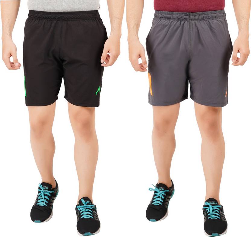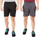 Pack of 2 Solid Men Black, Grey Sports Shorts