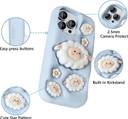 Back Cover for iPhone 13 PRO Cute FLOCK with Stand Case, Soft Silicone 3D Cartoon with Holder, Full Protective Back Cover ( SKY BLUE)