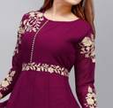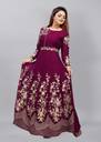 Embroidered Georgette Semi Stitched Anarkali Gown (Purple, Gold)
