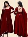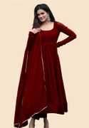 This beautiful Maroon Georgette Solid anarkali suit is a classic piece that goes well with any outfit and is ideal for grateful occasions. For ladies of all ages and body shapes, the flowing silhouette and detailed detailing make it a versatile and flattering option. This elegant and comfortable anarkali suit is made of quality fabric, ensuring that you will always look and feel your best.Size: S,M, L, XL, XXL,(Select As Per Your Requirement), Type: Readymade Printed Gown With Dupatta, Length: 50 Inches, Dupatta : 2 Mt, Bust Size: S-36",M - 38", L - 40", XL - 42", XXL - 44", Waist Size: S-32",M - 34", L - 36", XL - 38", XXL - 40" ,.The standout feature of this gown is its stunning print.Neck : Round, Sleeve : Full Sleeve