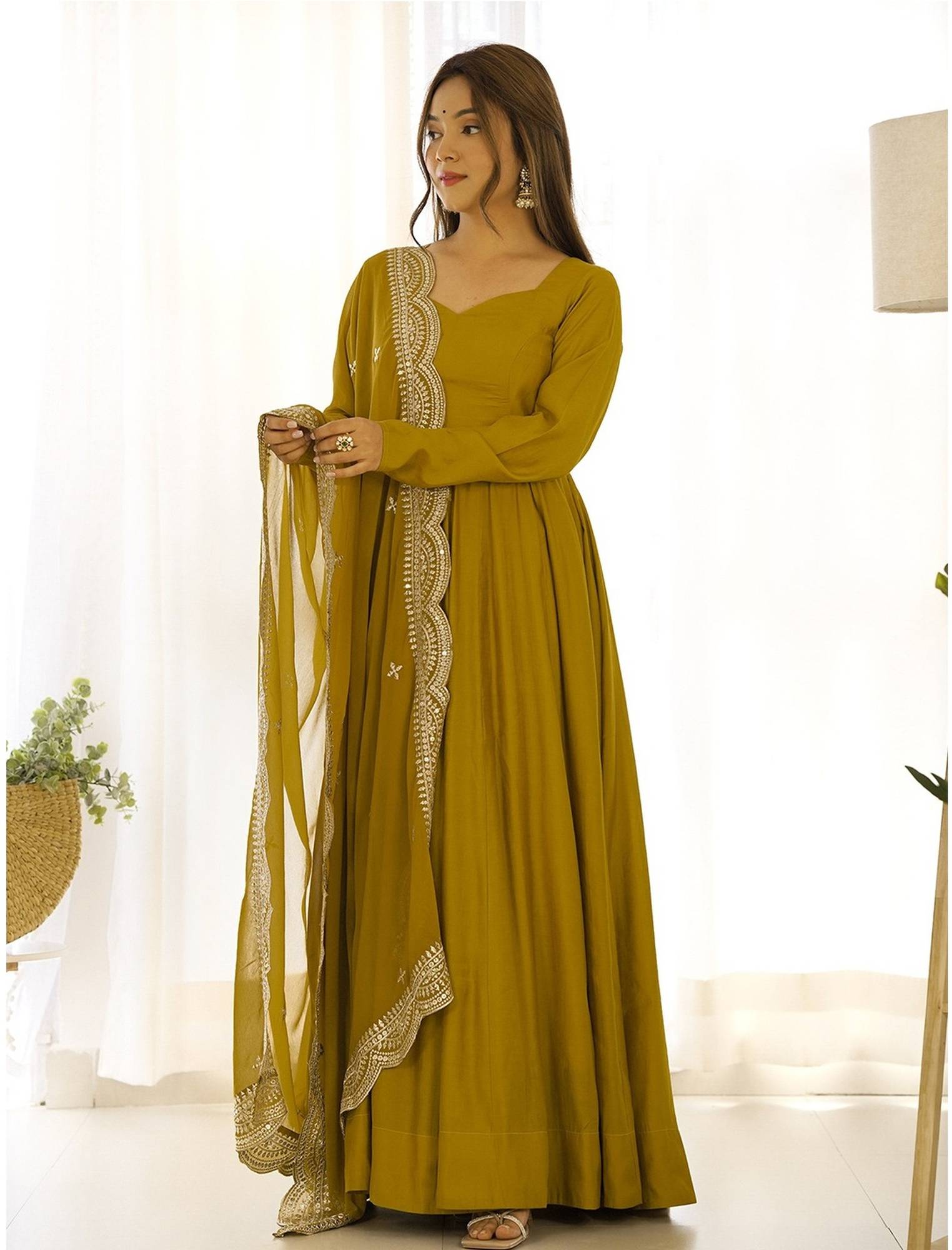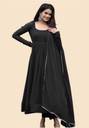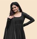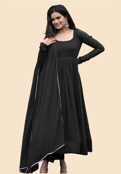 This beautiful BlackGeorgette Solid anarkali suit is a classic piece that goes well with any outfit and is ideal for grateful occasions. For ladies of all ages and body shapes, the flowing silhouette and detailed detailing make it a versatile and flattering option. This elegant and comfortable anarkali suit is made of quality fabric, ensuring that you will always look and feel your best.Size: S,M, L, XL, XXL,(Select As Per Your Requirement), Type: Readymade Printed Gown With Dupatta, Length: 50 Inches, Dupatta : 2 Mt, Bust Size: S-36",M - 38", L - 40", XL - 42", XXL - 44", Waist Size: S-32",M - 34", L - 36", XL - 38", XXL - 40" ,.The standout feature of this gown is its stunning print.Neck : Round, Sleeve : Full Sleeve
