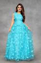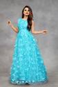 This Gown is Crafted with Butterfly over Net Fabric Having Embroidery Work on it. Gown is Comes With Inner Attached. Gown Color Firozi, Gown Length is 56 Inch. It has Sleeveless Gown. Gown is Semi-Stitched which can be fitted up to 42 inch Bust Size. Gown is Emblished with Fancy Butterfly. Dry Clean Or Normal Hand Wash. Product Color May Slightly Variation Due To Photographic Lighting Or Your Screen Settings And Other Accessories Are Only Modelling Purpose.