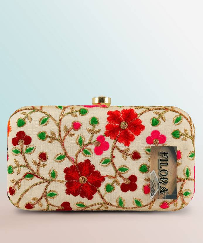Handicraft Party Wear Hand Embroidered Box Clutch Bag Purse For Bridal, Casual, Party, Wedding, Designer Floral Emblished Box Clutch with Sling For Women/ Girls Elegance Womens Wallet Clutch Purse Party Wear Hand Velvet Box Zari Embroidery Work on Silk Texture Specially Designed sparkling jaipuri febric chain clutch for ladies girl and women