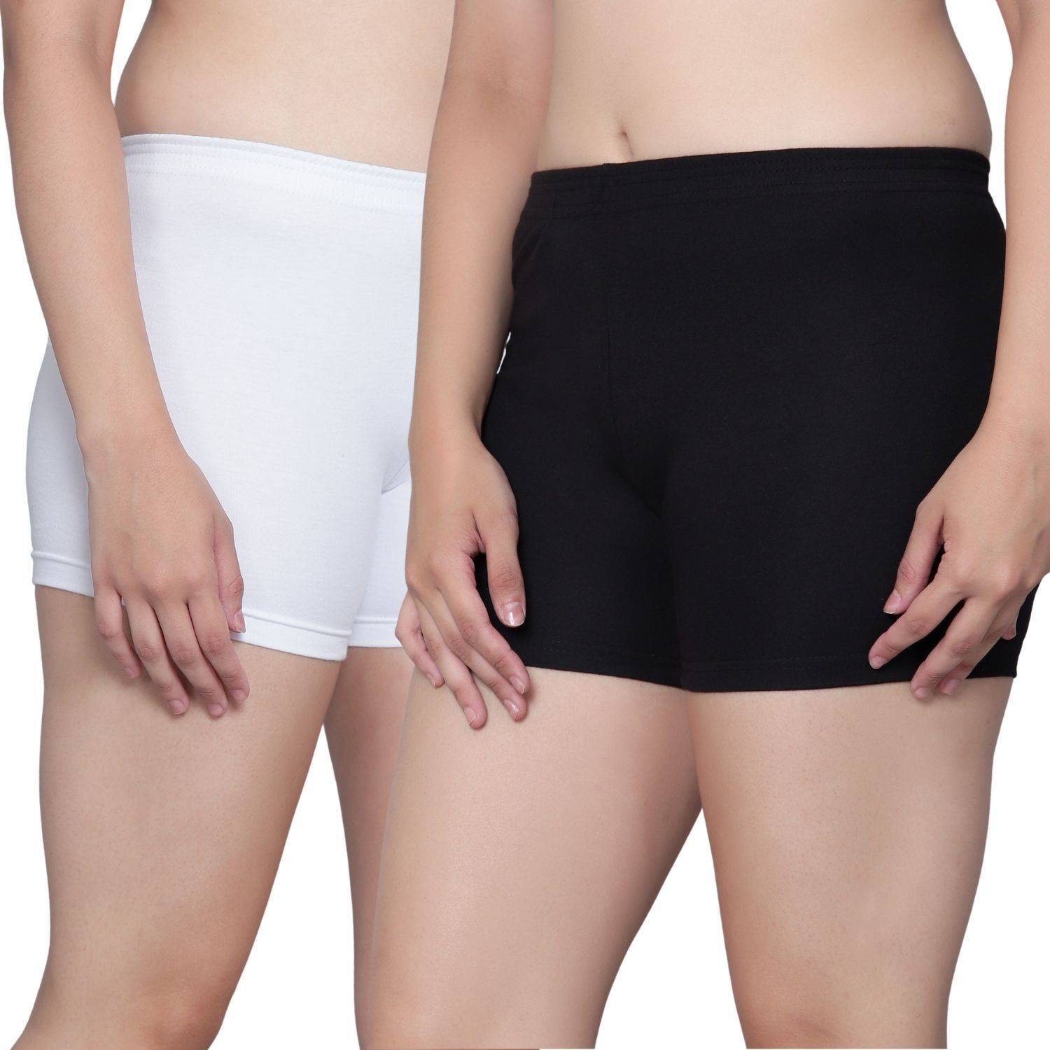 Aimly Women Cotton Stretchable Cycling Gym Yoga Above Knee Shorts Pack of 2