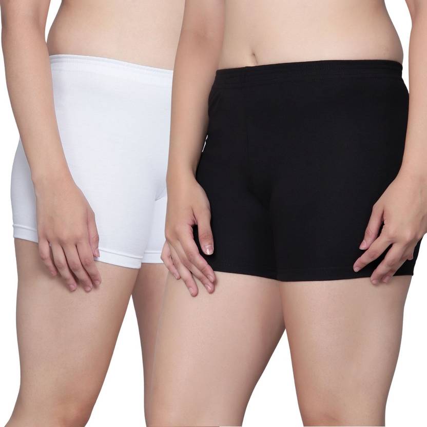 Aimly Pack of 2 Solid Women Black, White Cycling Shorts