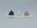 AIR9999 Natural Amethyst Rose Quartz And Clear Quartz 15 mm Mini Pyramids On Selenite Rough Stick Set For Reiki Healing Decorative Showpiece - 2.5 cm (Crystal, Multicolor)