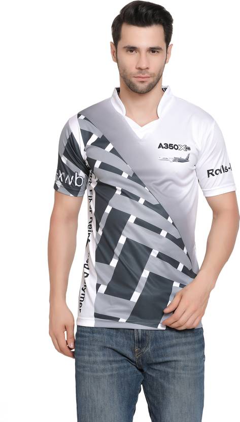 Men Printed V Neck Cotton Blend White, Black T-Shirt