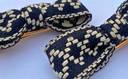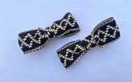 Add a touch of modern flair to your hairstyle with these Black & Beige Woven Bow Hair Clips. These beautifully crafted bows feature a striking geometric woven pattern, perfect for adding a sophisticated accent to any look. Whether you're dressing up for a special occasion or simply want to elevate your everyday style, these versatile clips are the perfect choice. The secure clip backing ensures a comfortable and reliable hold for all hair types.