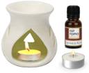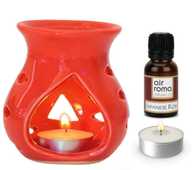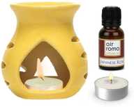 Airroma Ceramic White Aroma Burner/Diffuser Set with 10ml Japanese Rose oil & 2 Pcs Candles Candle (White, Pack of 4)