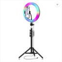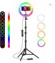 Ring light with 10 inch outer diameter, medium size with powerful lighting. Comes with ball head mount for tripod and cell phone holder, easy to install and use on tripod, lighting for phone photography or live video. After installed on the ball head mount adapter, the ring light can be rotate 360 degree to any angle that you need or turn it from horizontal to vertical orientation Multifunctional ring light not only can be used as photography or live video light, but also suitable for makeup, reading, indoor and outdoor lighting. with USB port, this ring light is easy for powered by wall charger, computer or power bank White light, warm white light, warm yellow light three color modes, each light color has 10 levels of brightness to adjust to meet the lighting needs for taking photos, videos or makeup, reading books in different environments Professional photography ring light,