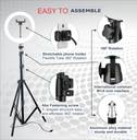 Mobile Ring light with 2.1meter stand 10-inch table top dimmable LED Ring Light is made of special energy-saving LED beads and powered by constant current drive. There are 3 light modes( warm, nature, cold) and 10 levels brightness that can meet all your needs. It is equipped with a smartphone holder of which the width can be adjustable from 2.2 to 3.7 inches. It is detachable and portable. And it is convenient to carry and use. This ring light can be applied on various occasions such as makeup, YouTube video shooting, wedding, indoor light filling, outdoor photography, advertising photography, video shooting, streaming media, reading, or other activities in daily life, it makes sure the photographer can get the best possible light from this compact light. It equips with dimmable function with a wide dimming range from 10%-100% to meet different light source. Filters are for changing shooting effect, including white filter for enhancing skin tone in portrait and softening the light source and orange filter for changing color temperature simply to 6500.