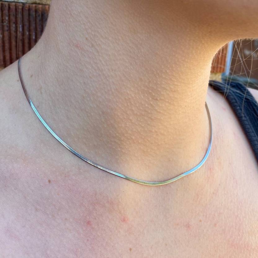 3mm Width 21.5" Inch Long Size Thin Flat Blade Snake Herringbone Necklace Chain