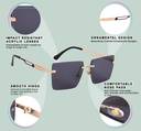 Ditch the bulky, embrace the extraordinary. Slip on a pair of AISLIN rimless sunglasses and feel the sun on your skin, the wind in your hair. With AISLIN, every moment is an opportunity to shine, unhindered and free. Made for the bold, loved by all.