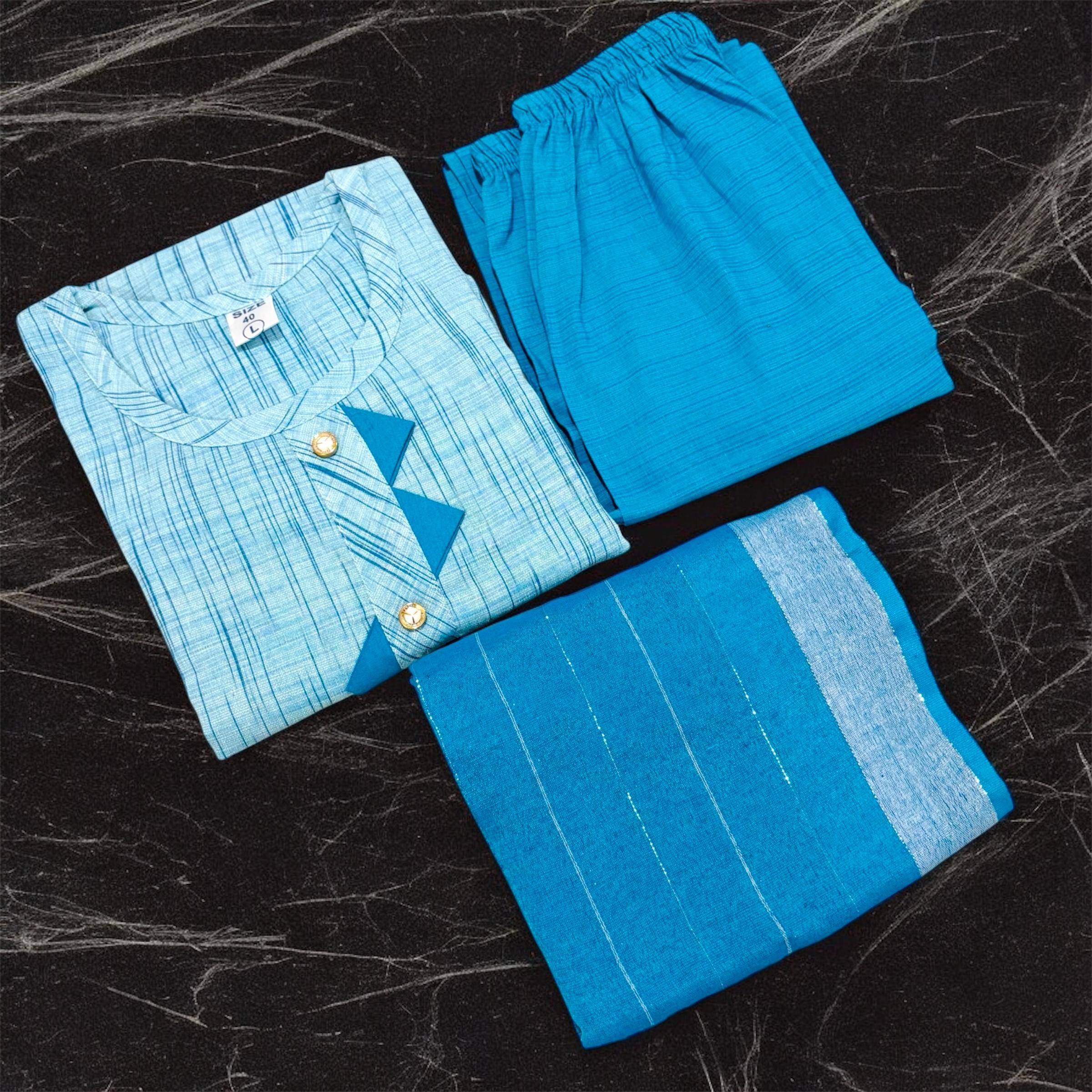 Women's Girl's Khadi Cotton kurti Pant Dupatta set