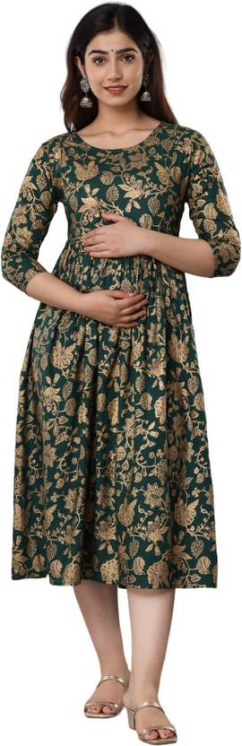 Maternity Dress With 2 Concealed Zip: Stylish Maternity Kurti with Both side invisible 9-inch vertical Opening zippers for easy Breastfeeding access. Easy to open and close this Nursing Kurti anywhere at any time to breastfeed your baby.