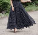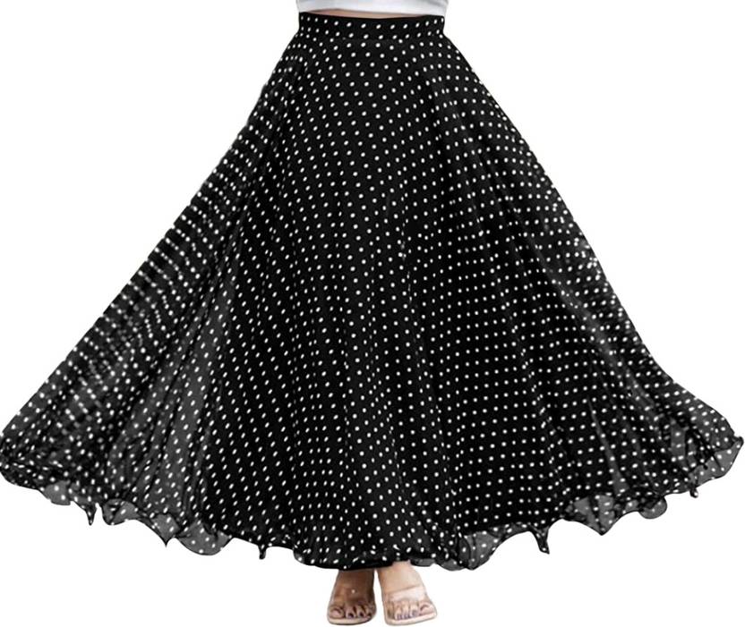 we made Our multicolor and white dot printed flared full lenth skirt, made of georgette (blooming) fabric, features a partially dori colser with slip-on closure and printed with polka dot print, this style is perfect for light festivities.You Can Wear: special occasion, Wedding, festivals, family gathering, Festival Wear, Ceremony Wear, Party Wear, Collage Functions so your outfit should be too. size: S,M,L,XL,XXL,3XL