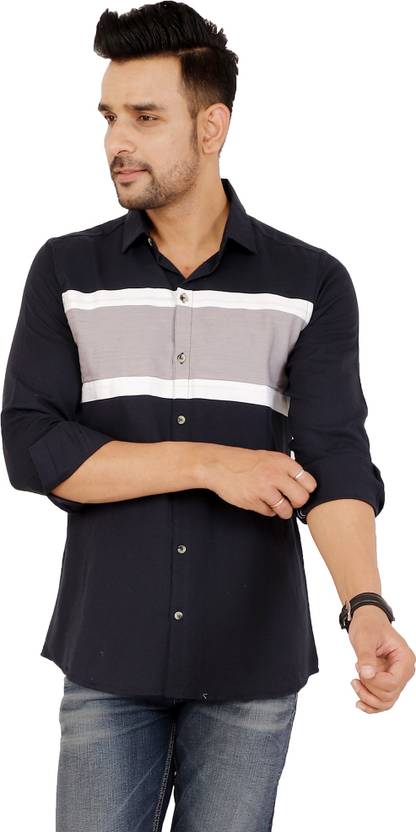 Men Regular Fit Striped Double Collar Casual Shirt