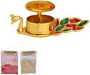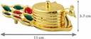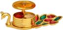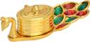 AJ Creations Roli-Chawal Tikka Box|Sindoor Kumkum Dani |Chandan-Haldi in Double Dibbi Coloured Peacock Shape for Gift, Pooja & Decorative Purpose-(Roli Chawal Pouch Included) Gold Finish Decorative Showpiece - 3.7 cm (Metal, Gold, Red, Green)