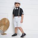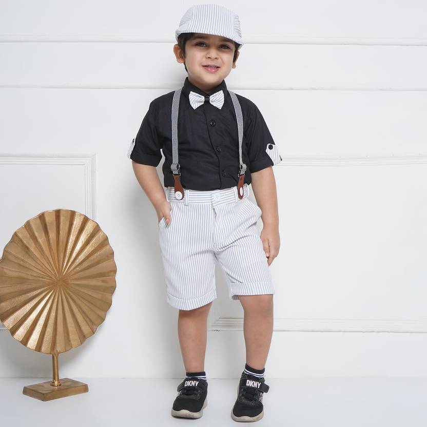 AJ Dezines Boys Party(Festive) Dress Shirt, Shorts, Suspenders, Cap, Bow Tie (Black)