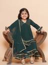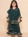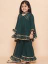 Light, breathable and beautiful sharara set shall definitely be her go-to ethnic pick for any festive occasion. The flared sharara, Kurta and dupatta are made in Georgette, adorned with ornamental laces. The relaxed silhouette and natural material ensure the utmost comfort for the little one, so the best smile is always on.