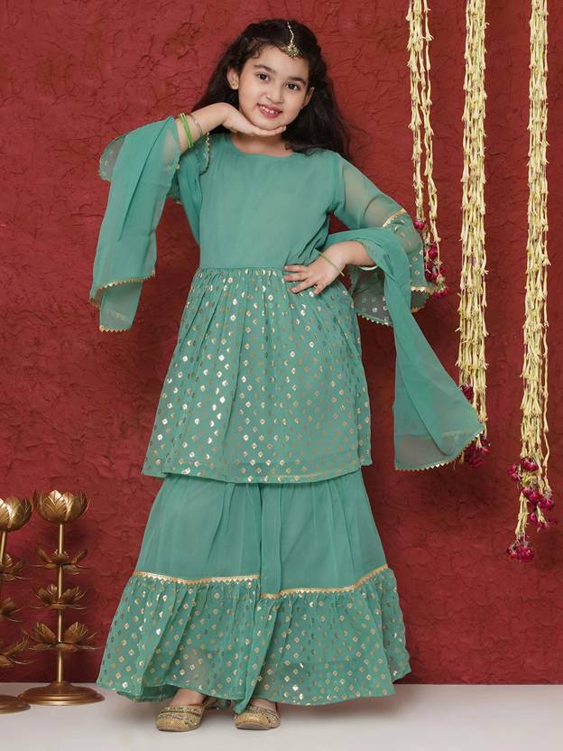AJ Dezines Girls Festive & Party Kurta and Sharara Set (Green Pack of 1)