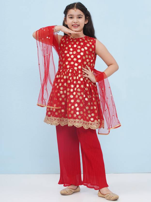 AJ Dezines Girls Festive & Party, Wedding Kurta and Dupatta Set (Red Pack of 1)