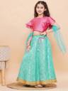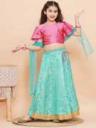 Girls Lehenga Choli Ethnic Wear Self Design Lehenga Choli (Blue, Pack of 1)