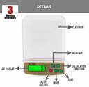 The Tare function is a key feature of this digital scale, enabling you to weigh ingredients without including the weight of containers. Simply press the Tare button, and you can reset the scale to zero and subtract the weight of the empty bowl or container. This makes it easier to measure ingredients directly, offering accurate readings and saving time, especially when preparing recipes that require quite a few ingredients.
