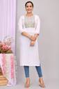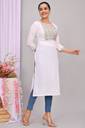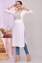 Women Printed Viscose Rayon Straight Kurta (White)