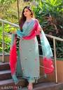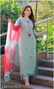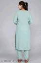 "This kurta's distinctive style and stunning color will draw a lot of admiring attention. It is made from high-quality rayon that is lightweight and soft against your skin. The pants have a side slit at the hem and a somewhat elasticized waistband for a comfortable fit. The entire outfit is enhanced by a lovely dupatta.