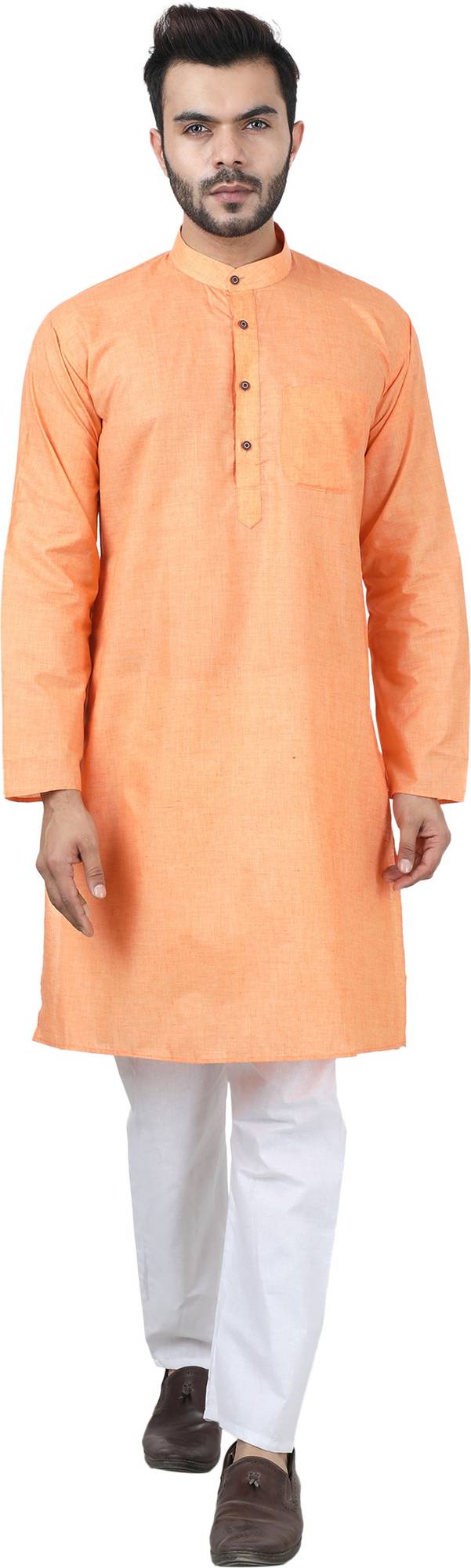 Pure cotton kurta provides you simple styling with shear comfort, Chinese collar with buttoned neck provides perfect traditional look. Kurta comes with two side pockets, side slits and a straight hem, choose your perfect match with your bottoms or event theme. Basic look suits the kurta with variety of bottoms like pyjama, dhotis, patiala, chudidar or even with your jeans, true to its name Ajay Arvindbhai Khatri delivers product with finest fabrics and finishing.