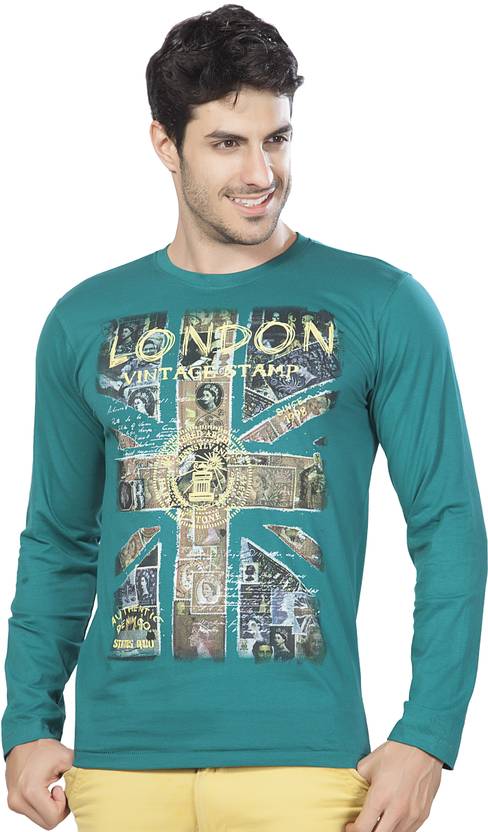 Men Printed Round Neck Cotton Blend Green T-Shirt