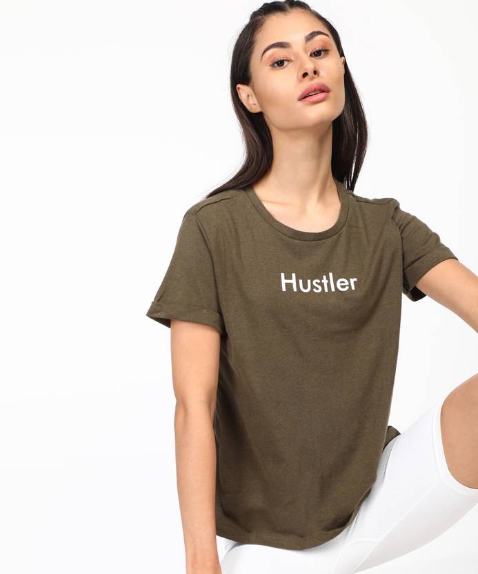 Ajile By Pantaloons Printed Women Round Neck Dark Green T-Shirt