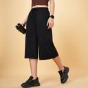 Awesomeness is just inbuilt into our collection. This 3/4th pair has an elasticated waistband, pockets and an easy-fitting silhouette in a dark shade. Crafted from a select knit material to offer you the utmost stretchability and ease of movement.