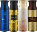 Blu_DEO_200ML Details- A refined and a sophisticated French fragrance, this masculine fresh aqueous deodorant caters to the contemporary tastes of energetic and spirited young men. Introducing tangy aromas of the summer, Blu by Ajmal�s composition offers a refreshing choice for men with a penchant for the great outdoors. A distinguished icy aroma that articulately blends top fresh notes comprised of Bergamot, Lavender and Watermelon with invigorating ingredients like Lotus and Jasmine that form the core of the fragrance. Blu by Ajmal resonates with Sandalwood, Musk and Amber at the base. Aurum_DEO_200ML Details- Aurum by Ajmal is a beautifully balanced fragrance that captures the spirit of youth, self-indulgence and glamour. Sun kissed With fruity and floral summer notes like lemon, raspberry, orange blossom, gardenia and jasmine and embraced With Woody and musky notes of amber, musk and vanilla, the golden allure of Aurum adds the touch of Midas to any occasion. Wisal_DEO_200ML Details- Wisal is an inviting fragrance that features fresh modern notes, blended for mature and dynamic Women Who are trendy yet traditional at heart. Its mix of fresh floral top notes combined With spicy floral heart and floral musky base notes combing Rose and Musk are soothing for the psyche and reflect the Wearer�s self-assurance. WisalDhahab_DEO_200ML Details- Cast in a magnificent gilt-edged bottle, Wisal Dhahab is the new Mukhallat spray from the house of Ajmal. The fragrance opens with Fruity Fresh top notes embellished with Apple, Peach, Pear, Grapefruit and Mandarin. At its Heart, the essence engulfs Floral highlights of Rose, Jasmine, Orchid and Geranium. And to complete the sheer experience of the journey, the Base Notes are Woody Musky resonating with Sandalwood, Cedarwood, Patchouli and Musk. Wisal Dhahab is a fragrance that is perfectly crafted for those who wish to add an extra touch of gold and shimmer to their persona.