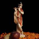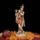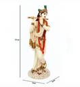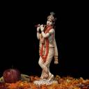 Ajmera Sales Krishna Adventure Statue- Hindu God of Love Premium White Marble Finish Decorative Showpiece - 25 cm (Polyresin, Multicolor)