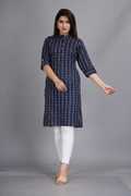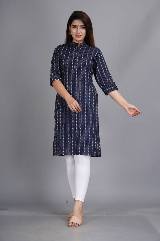 AK FUSION Women Printed Straight Kurta (Dark Blue)