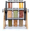 Multipurpose Plastic & Wooden Wheel Spice Rack 12 Jar, 130 ml Wooden Spice Container for Kitchen Spice Containers for Storage
