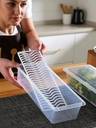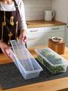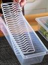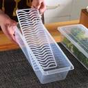 Thanks to its elongated shape, this fridge container enhances storage space and accommodates several items with ease. You can enjoy the flexibility to store long vegetables, fruits, or leftovers without any space wastage. Moreover, you can organise your fridge efficiently, thanks to the elongated shape of this container, allowing you to make excellent use of every inch of shelf space.