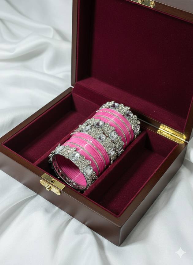 Celebrate your special day with this stunning traditional bridal chuda, crafted with vibrant colors and elegant detailing. Symbolizing love and new beginnings, this chuda adds a beautiful, royal touch to bridal attire. Lightweight, durable, and perfect for weddings and pre-wedding ceremonies.