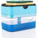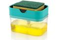 AKEN Liquid Soap Dispenser with Sponge Holder for Kitchen sink, 2 in 1 Soap Dispenser for Dishwasher Liquid Holder , Liquid Dispenser Through Pump with Sponge (Plastic - 380 ml) (Make in India) (Light Green)
