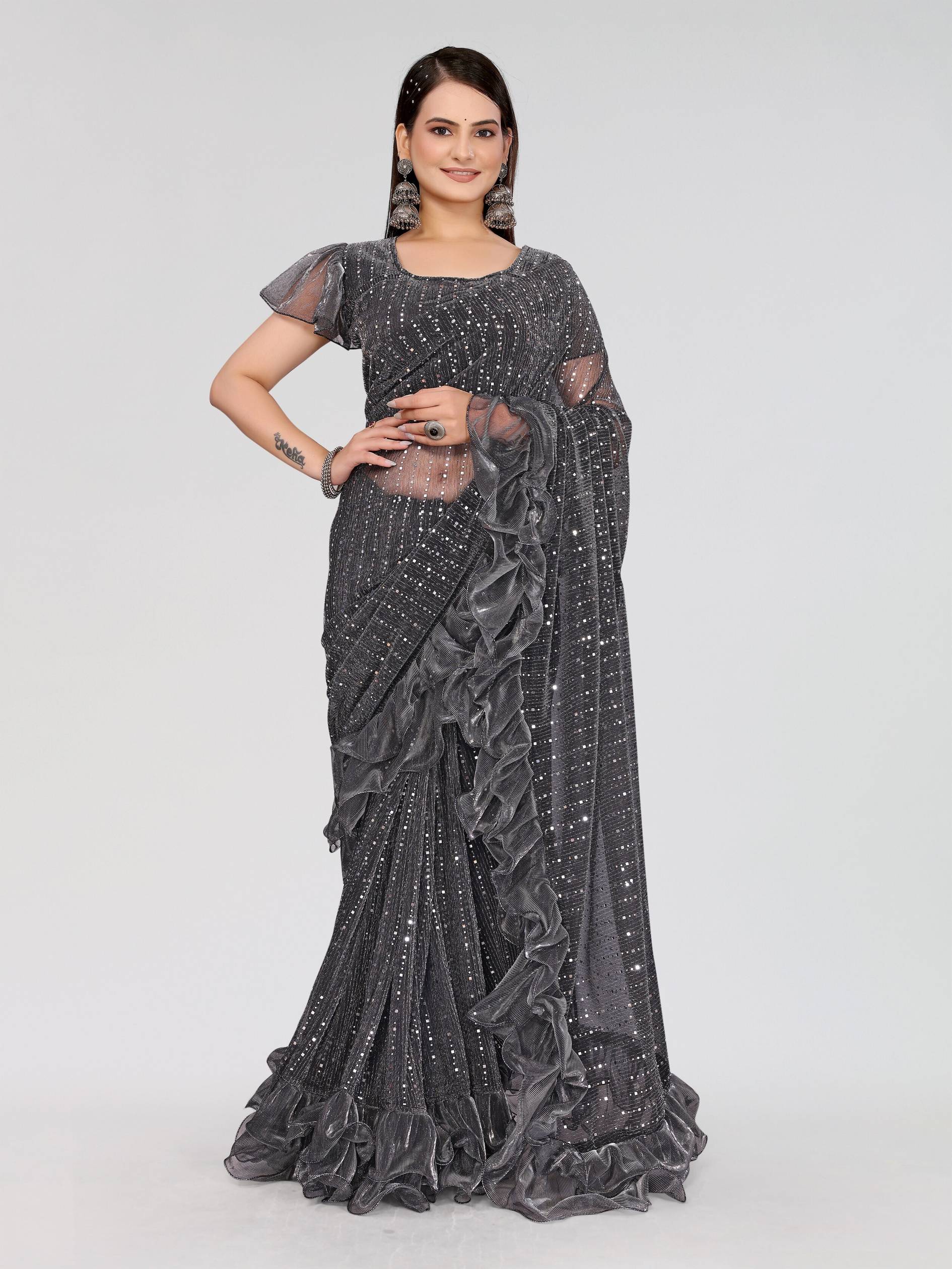 A saree is a timeless and versatile garment, typically measuring Blouses in the 38 to 42 inch size range are designed to fit medium to large bust sizes , Some blouses also include padding for added shape and support, while others are unpadded for a more natural fit. The choice of fabric plays a crucial role in the overall look and comfort of the saree. Popular fabrics AS SUPERNET which are known for their luxurious texture and are ideal for weddings and special occasions. Also NET provides a sleek, crinkled texture, adding a contemporary touch , ideal for summer wear.