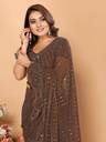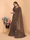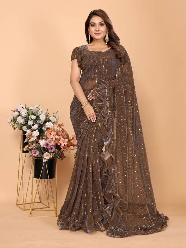 AKFABRICS Self Design Bollywood Net Saree  (Brown)