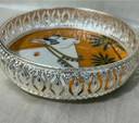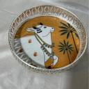 Akhand German silver Tray with Cow Design, Decorative Metal Platter 8 inch(20.3cm) Decorative Showpiece - 8 cm (Silver Plated, Metal, Silver)