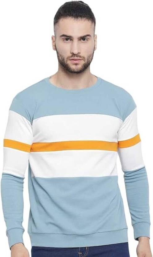 Men Striped Round Neck Pure Cotton Blue T-Shirt